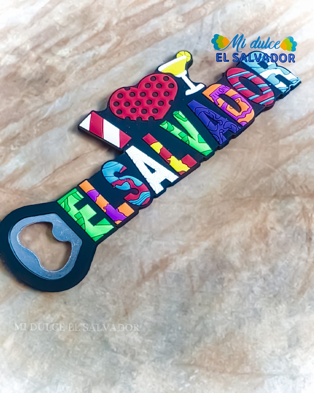 Destapador con silueta de El Salvador, funcional y colorido, perfecto para llevar un detalle salvadoreño en cualquier ocasión. 🇸🇻🍻
